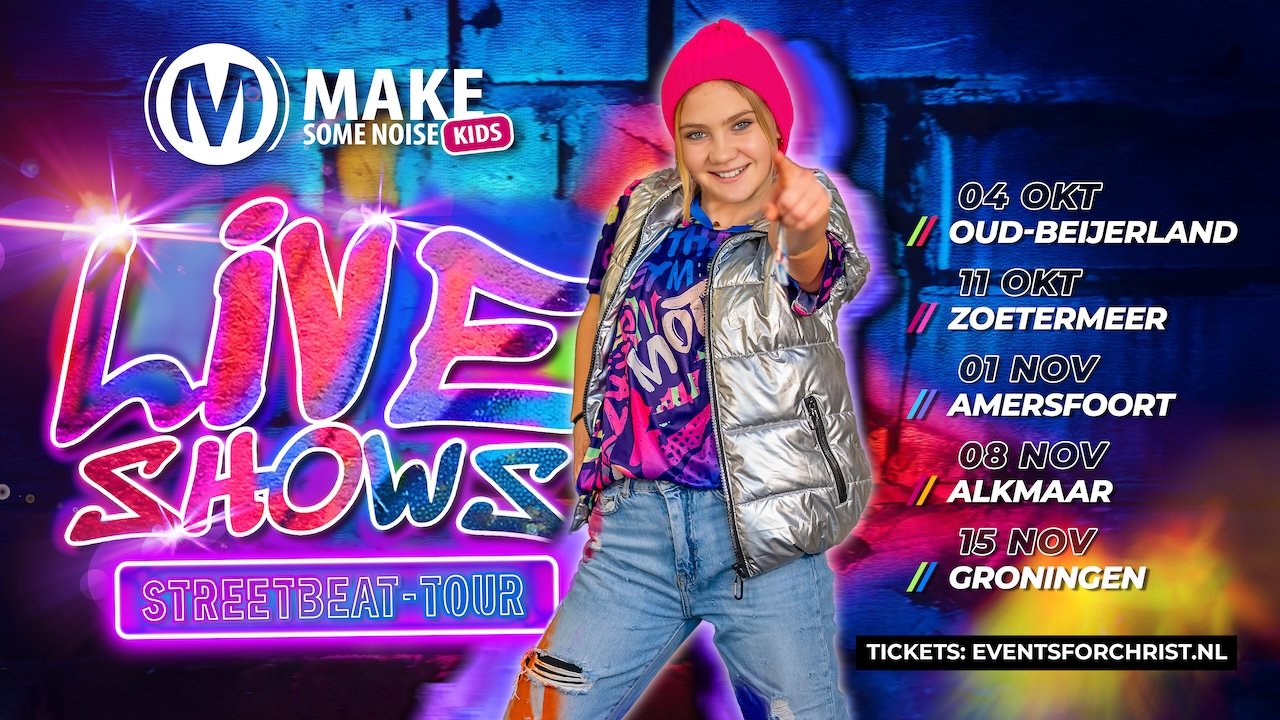 Zet je schrap voor een knallend feest met de Streetbeat Tour van Make Some Noise Kids! Een interactieve show vol muziek, dans en energie voor kinderen van alle leeftijden. Mis dit feest niet!